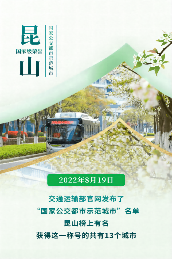好消息!昆山榮獲“國家公交都市建設(shè)示范城市”稱號(2022/09/5)